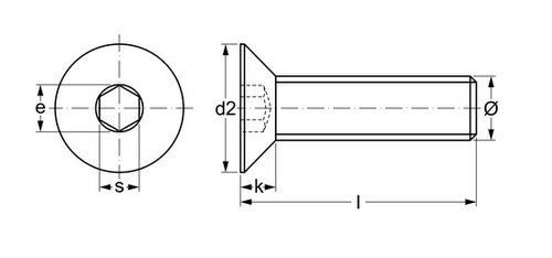Countersunk flat head screws with hexagon socket